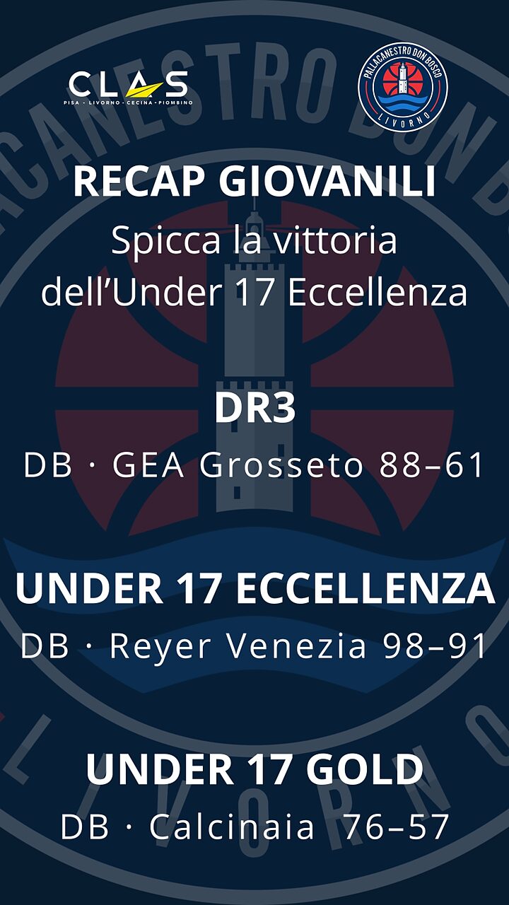 Clas Renault Pallacanestro Don Bosco Livorno: Di Dato 2, Baroni 5, Biagiotti, Madera 19, Bellomo 12, Rite 9, Malloggi 8, Tonini, Fusco 2, Scardigli, Gio. Landi, Rossi 9. All. Alessandro Papa, Ass. Samuele Pacchiani e William Pandolfi