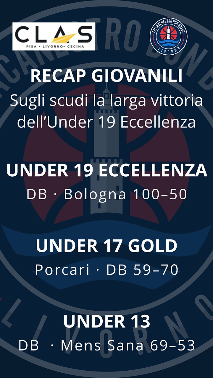 Continua la marcia vincente dell’Under 19 Eccellenza della Clas Renault Don Bosco; i ragazzi di Giuseppe Di Manno, infatti, battezzano il turno casalingo con una bella vittoria su Bologna, al termine di un match sempre agevolmente condotto dai rossoblu. Bresinski e compagni, infatti, scappano via già nel primo quarto, chiuso sul 29-15, nel quale accumulano 14 punti di vantaggio, poi incrementati nel corso del confronto, fino al larghissimo 100-50 della sirena conclusiva. In una ottima partita di tutto il roster, da citare i cinque uomini in doppia cifra: Susini (18), Lamperi (12), Tognoni (12), Regoli (11) e Pacitto (10).